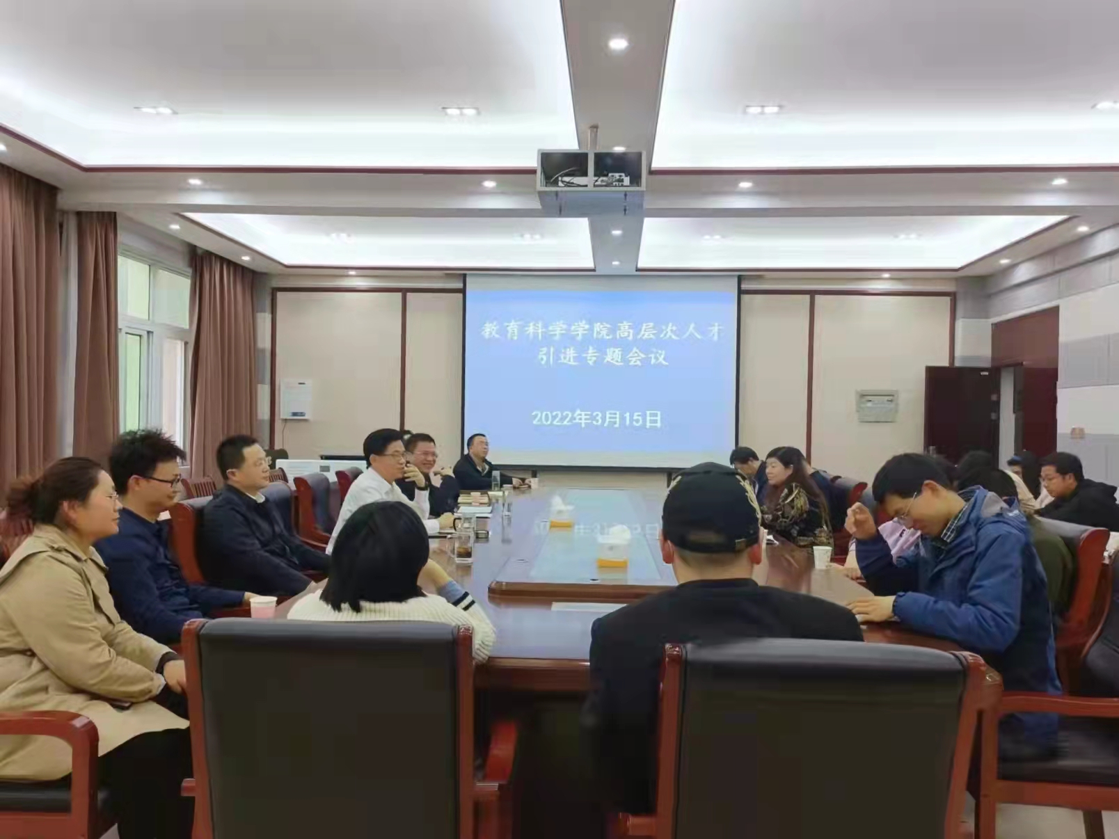 为扎实做好学院人才引进工作,3月15日下午,教育科学学院高层次人才引进专题会议在教科楼402会议室召开。院党委书记房加帅,院长何安明,党委副书记董银银,副院长郭勇、孙天义以及教研室主任和博士教师出席会议。