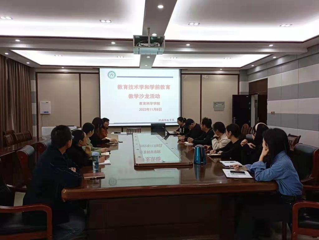 时间:2022-11-09 13:04:31 来源: 作者:宁焕焕 阅读: 次为加强教学经验交流,提升青年教师教育教学水平。11月8日下午在教科楼402,教育科学学院举办了教育技术学和学前教育教学沙龙。活动由学前教育系主任朱欲晓主持,所有专任教师参加了这次活动。