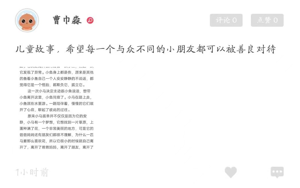 本次大赛面向教育科学学院全体学生,采用线上方式举行。参赛者需要发挥自己的想象力编写一篇600字以上的儿童故事作为参赛作品。故事内容要符合儿童成长规律,对儿童健康成长具有积极的引导作用,同时保证故事结构的完整和逻辑的严谨。活动负责人从故事的完成度、感染力、文学美感和教育意义等多方面对所有作品进行综合评比,期间牛洁楠对活动进行督导,确保比赛的顺利进行。一篇篇充满奇思妙想的故事,向孩子们讲述着“抗疫英雄”、“医患关系”、“友谊长存”,让他们感受到人间的温情与友谊的美好。经过评委们认真的评比,最终李阳阳、董卜霖、陈慧婷荣获比赛一等奖,曹巾淼、成烨、温佳妮、乔梦梦、武姿获得比赛二等奖。