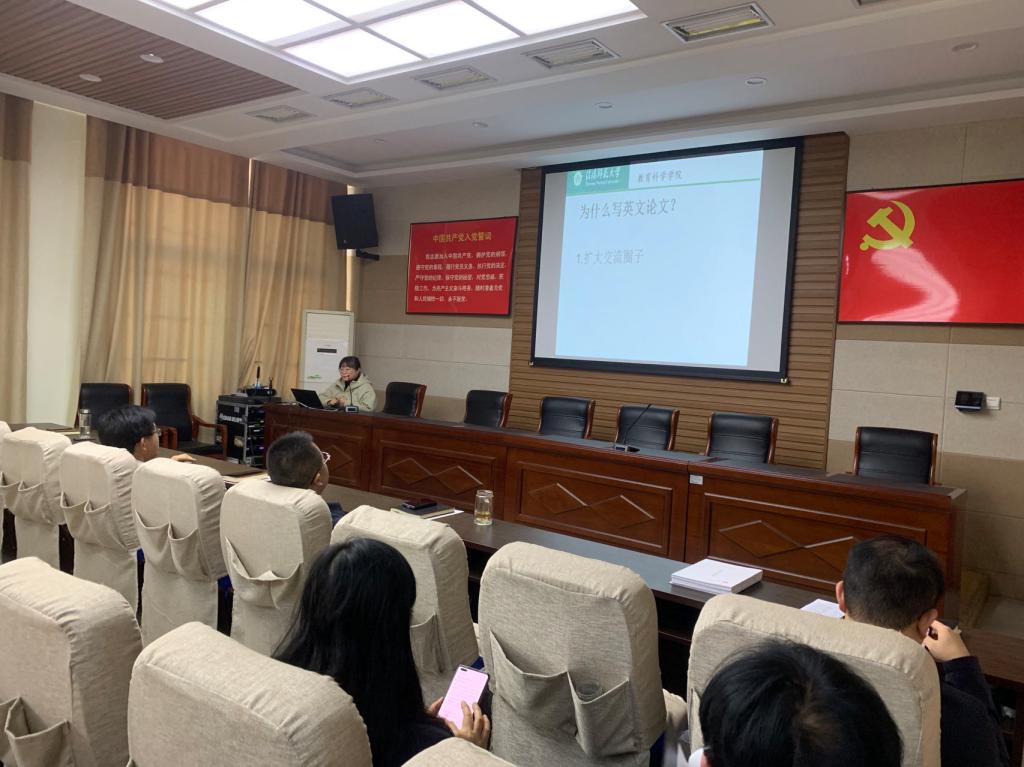 11月25日上午,教育科学学院杨军义博士于教科301会议室分享英文论文写作与投稿。报告会由我院党委书记房加帅主持,教育科学学院全体教职工参加了此次报告。
