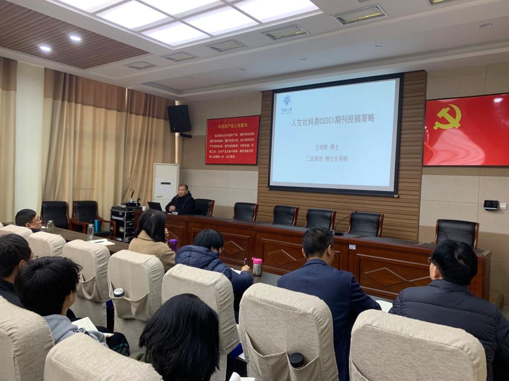 12月3日上午,应教育科学学院邀请,河南大学王明辉教授在教科楼301报告厅作题为“人文社科类CSSCI期刊投稿策略”的学术报告。报告会由该院院长何安明主持,教科院全体教师及部分研究生聆听了报告。