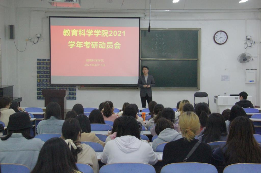 时间:2021-04-14 18:16:19 来源: 作者: 阅读: 次4月13日下午,教育科学学院于教科楼108教室开展2021年考研动员会。教育科学学院党委副书记李贵杰,团委老师朱方,2018级学前教育专业、教育学专业及教育技术学专业全体同学参加此次动员会。