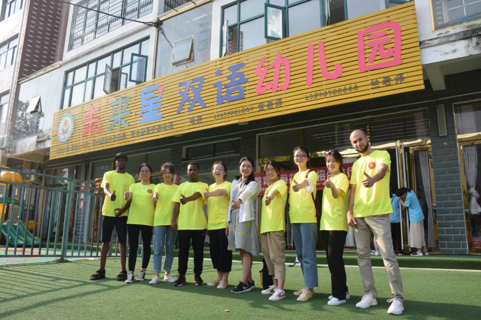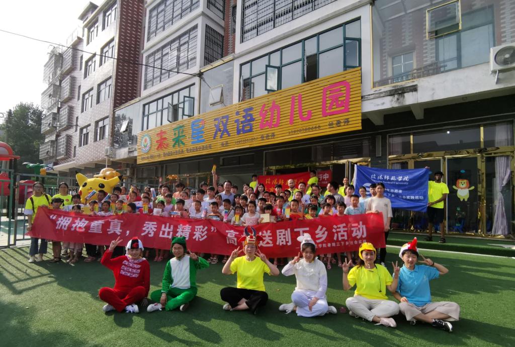 时间:2019-07-12 12:48:15 来源: 作者: 阅读: 次7月12日,教育科学学院暑期“三下乡”社会实践团队和留学生在思想政治与就业指导教研室副主任瞿浩,团委老师巴瑞的带领下,前往信阳市新县未来星双语幼儿园和东双河镇开展“拥抱童真,秀出精彩”高校送剧下乡活动。