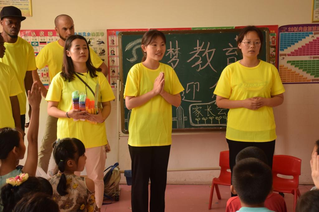 时间:2019-07-10 19:15:04 来源: 作者: 阅读: 次7月9日至10日,教育科学学院思想政治与就业指导教研室副主任瞿浩、团委老师巴瑞,国际交流合作处雷思雨带领教育科学学院心理学专业、学前专业、教育学专业和教育技术学专业12名优秀学生,以及来自赞比亚,巴基斯坦,塔吉克斯坦等国家的5名留学生先后来到信阳市新县浒湾笑星星幼儿园和未来星双语幼儿园继续开展“心连心,织梦未来”爱心教育之旅。