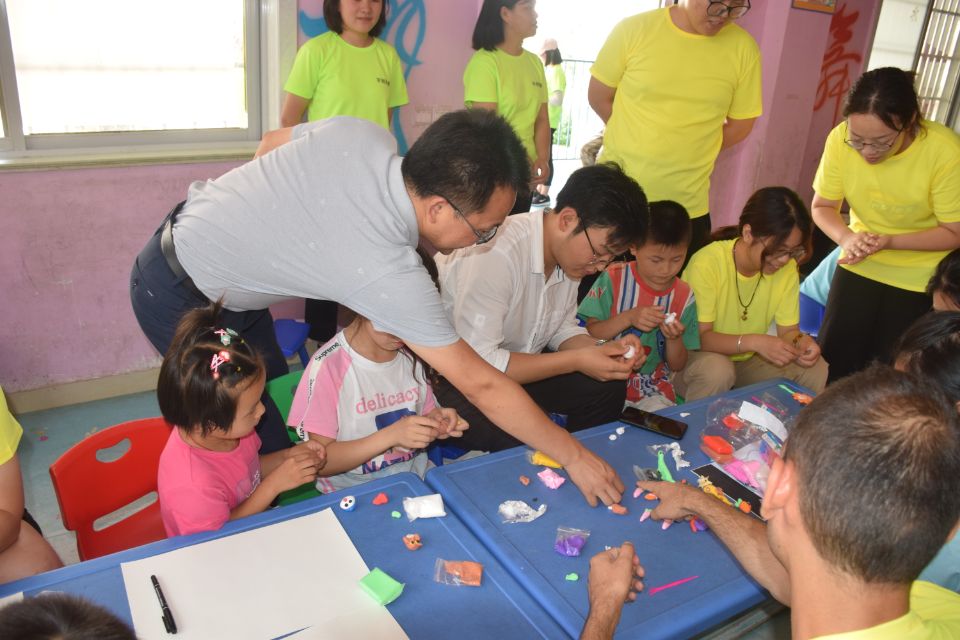 接着,志愿者拿出了为孩子们准备的色彩鲜艳的橡皮泥及手工用具等,并为小朋友们细心讲解了捏橡皮泥的方法。在志愿者们的帮助下,孩子们开始动手操作。小朋友们充分发挥自己的想象力和动手操作能力,利用搓、揉、捏、团等多种方式,用一双双灵巧的小手,将橡皮泥变成玫瑰花、卡通人物及各式各样的小动物。最后对优秀橡皮泥手工制作者也发放了彩笔作为奖励,活动现场气氛浓烈,充满欢声笑语。