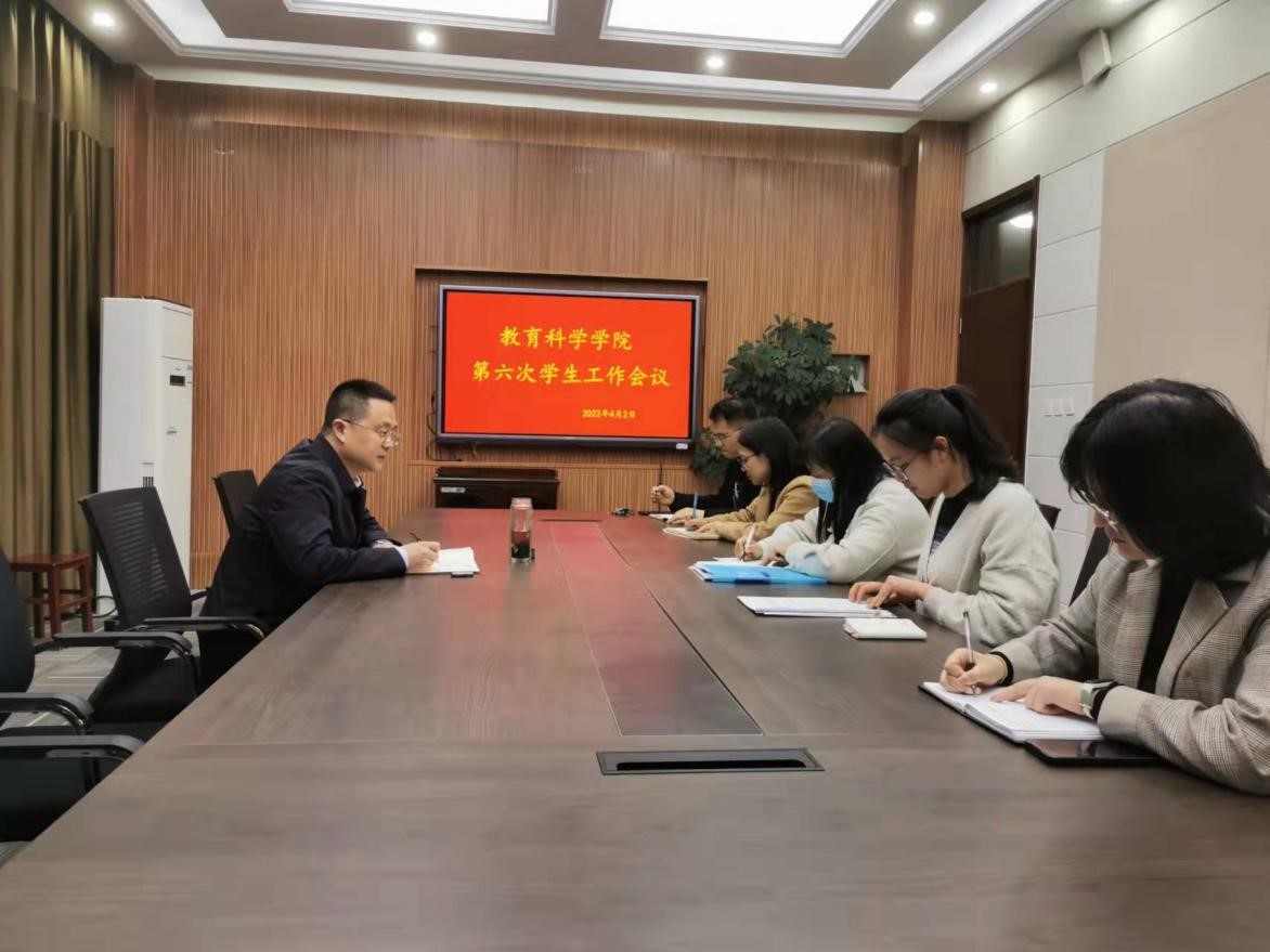 时间:2022-04-03 16:54:44 来源:教科院新闻部 作者:马玉娇 周媛媛 朱亚彤 阅读: 次为全面贯彻习近平总书记关于坚决打赢疫情防控阻击战的重要指示精神,落实上级组织相关工作要求,进一步做好清明节期间学生教育引导工作,保持校园封闭管理期间在校学生的精神面貌和心理状态向好向上。4月2日,教育科学学院召开第六次学生工作会议,院党委副书记董银银及全体专职辅导员参加会议。会议由董银银主持。