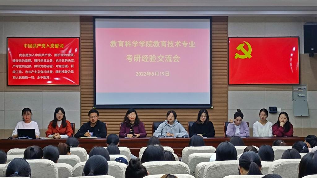 为营造良好的学习氛围,充分发挥榜样力量,5月19日,教育科学学院教育技术学专业在教科楼301会议室举办“教育技术学专业考研交流分享会”。会议特别邀请到考研上岸的2022届毕业生为2019级、2020级学生传授考研经验。团委老师田园,专业教师刘萱、武滨、宋晔及教育技术专业全体学生参会,会议由刘萱主持。