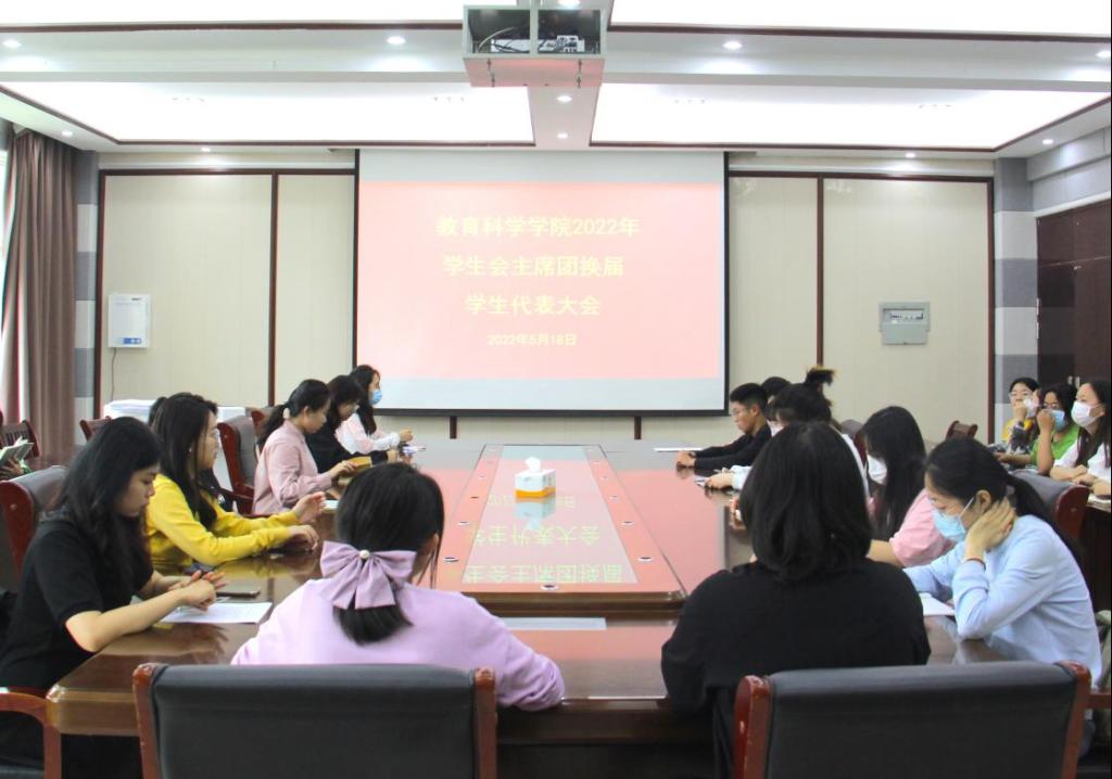 时间:2022-05-19 17:52:46 来源: 作者: 阅读: 次5月18日,教育科学学院2022年度学生代表大会在教科楼402会议室召开。分团委书记牛洁楠、专职辅导员杨艺卓,学生会全体成员以及21级班长团支书参加此次会议,会议由执行主席孙艳慧主持。