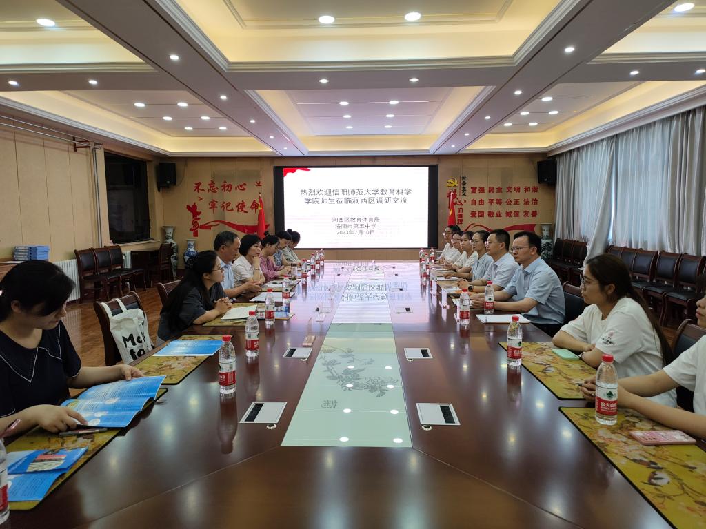 发挥专业特色,守护心理健康。7月10日,实践队一行到涧西区调研心理健康教育工作,并实地参观了洛阳五中的心理健康教育开展情况,听取了涧西区教师代表及该院学生代表带来的心理健康教育公开课。双方围绕心理健康教育和家庭教育中的实际问题召开座谈会,会上就心理测评工作、“医教”结合模式、班主任在心育工作中的作用、家校社协同育人等内容展开深入探讨和交流,并举行了大学生社会实践基地签约授牌仪式。