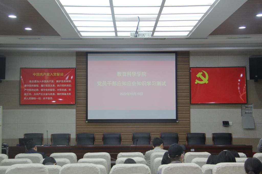 时间:2022-10-19 17:07:02 来源: 作者: 阅读: 次按照省委巡视整改相关工作要求,为进一步强化理论武装,全面加深党员干部对党的理论和相关政策的学习理解,10月18日,教育科学学院组织开展了党员干部应知应会测试,学院领导班子及全体党员教师参加。
