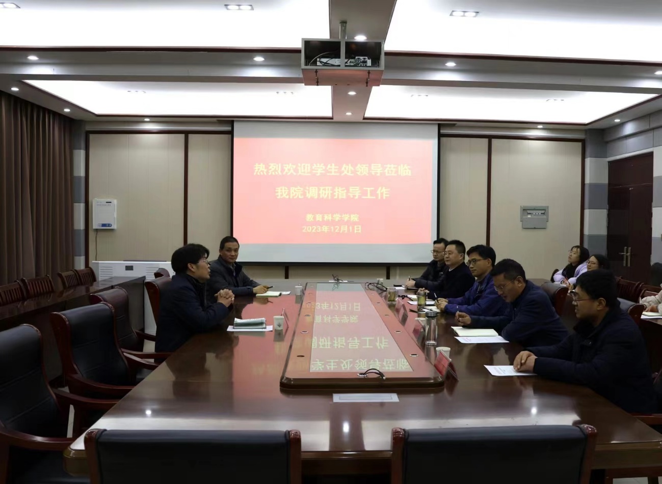 时间:2023-12-03 19:39:03 来源:教科院新闻宣传中心 作者:吴宇熙 崔佳怡 阅读: 次12月1日,学生处处长朱四倍、副处长王忠磊到我院进行调研指导。教育科学学院党委书记房加帅,院长何安明,党委副书记董银银,副院长郭勇、孙天义以及全体专职辅导员参加会议。会议于教科楼402会议室召开,由房加帅主持。