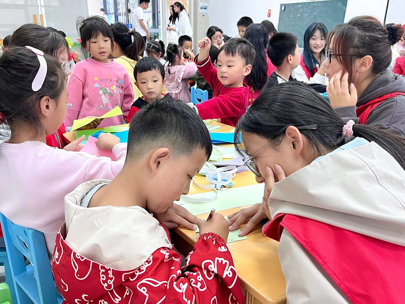 时间:2023-12-21 09:12:35 来源:教科院新闻宣传中心 作者:吴宇熙 崔佳怡 阅读: 次为深入学习贯彻党的二十大精神,推动高质量文化建设,不断增强全体市民文化自信,信阳市图书馆、多多28携手开展“青苗课堂”志愿服务项目,切实开展各类手工活动,加强对城乡社区青少年群体在思想引领、学业辅导、健康生活、科技创新、艺术素养等方面的帮助。教育科学学院分团委书记牛洁楠担任活动指导老师。