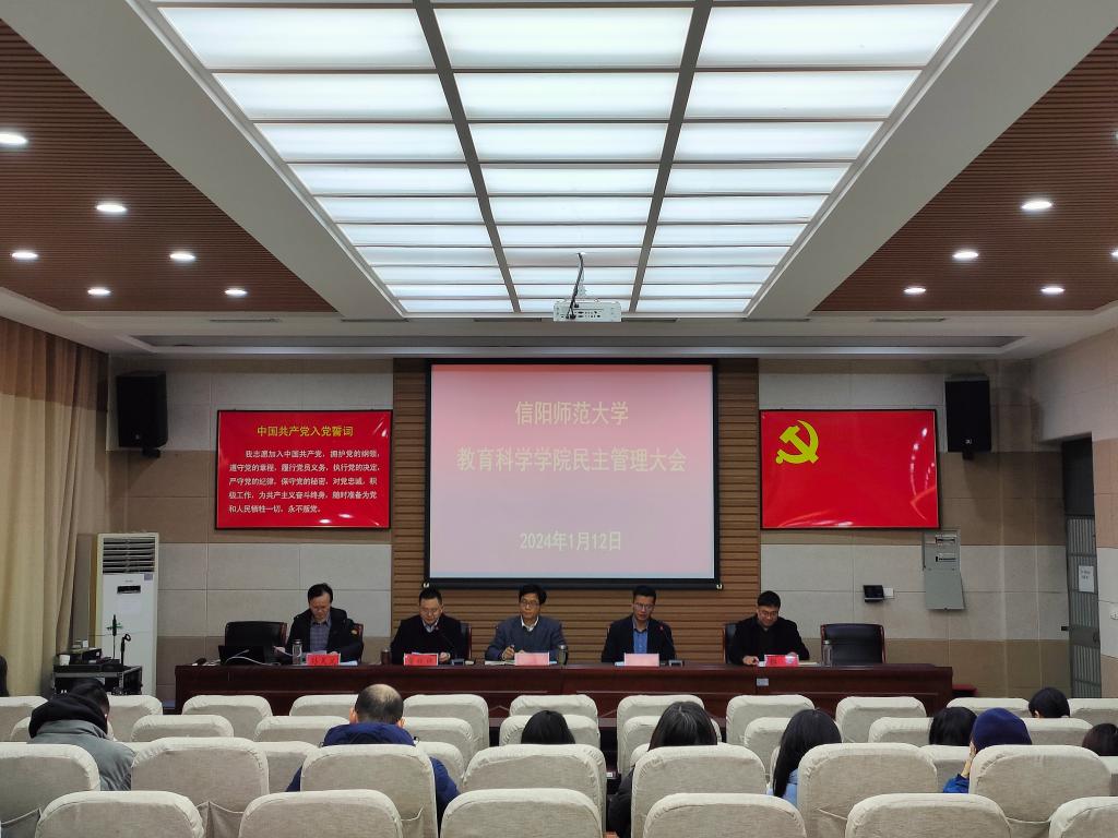 为扎实推进校党委巡察整改,落实教职工的知情权、监督权,调动教职工参与民主管理的主动性、积极性,进一步统一思想、凝聚共识,1月12日上午,教育科学学院在教科楼301会议室召开2023年度教职工民主管理大会,全院教职工参加大会。大会由学院党委副书记、分工会主席董银银主持。