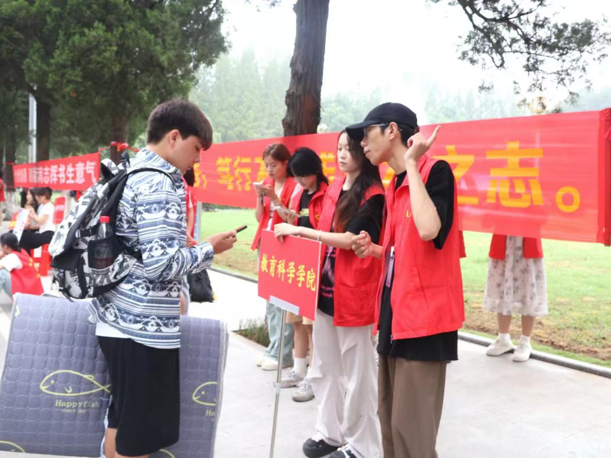 周密部署,精心谋划。教育科学学院领导高度重视迎新工作,召开迎新专题筹备会,部署和细化各项迎新工作,确保迎新工作的顺利进行;不断优化新场地布置,设置咨询台、打卡墙、行李暂存处等,确保新生各项入学手续办理更加便捷、精准、高效。