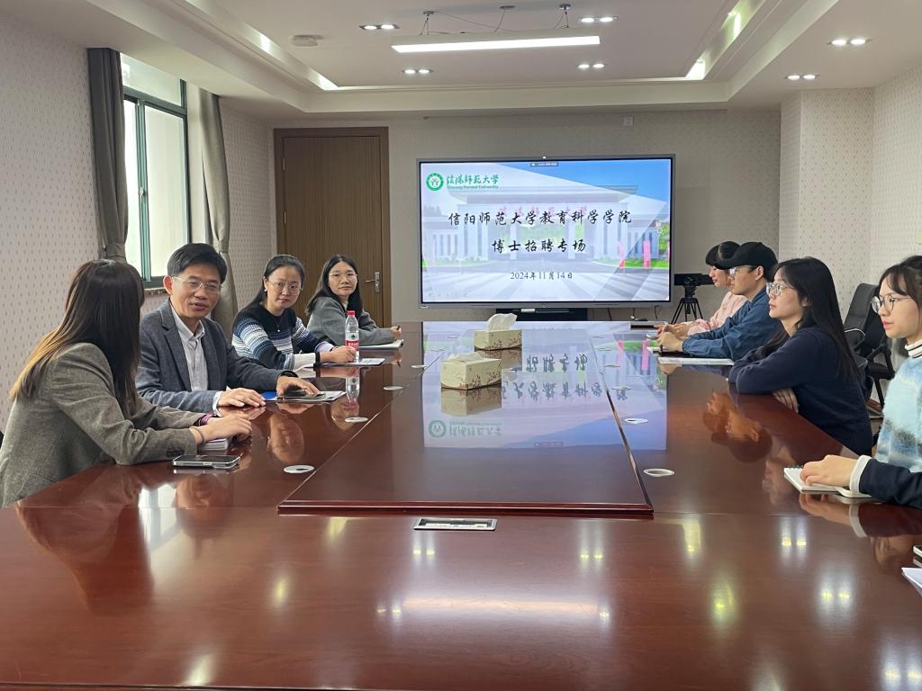 时间:2024-11-16 08:49:00 来源: 作者: 阅读: 次为贯彻落实学校关于加强博士学位授权学科建设点建设的相关部署,推动学学院事业更好发展,2024年11月13-15日,教育科学学院党委书记房加帅、专职组织员田园在信阳师范大学人事处带领下组成招聘团队赴上海开展高层次人才引进专项工作。