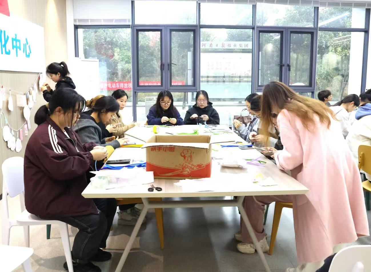 为激励女生们进行创意设计,丰富女生们的生活,11月16日下午,教育科学学院在“一站式”学生社区大学生文化中心举办“链起美好,扭出乐趣”女生月手工制作活动。活动由心yu辅导员工作室主办,童心艺趣社协办,教育科学学院团委书记牛洁楠参与并指导。