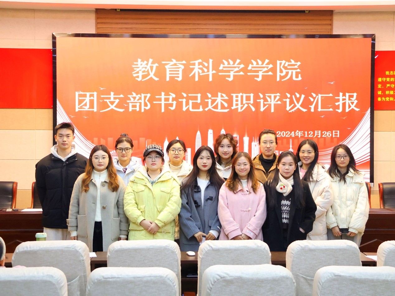 会上,各班团支书对本班团支部的基本情况进行了简单介绍。他们围绕思想引领、团员管理、团员发展、服务回馈等方面,系统梳理并汇报了过去一年的共青团工作,还对2024年的工作予以总结、分析,为2025年工作的开展提出了具体规划与创新举措。大家一致表态,在新的一年要深挖同学们的需求,把团支部打造成凝聚、服务、引领团员的阵地,让青春在奋斗中绽放的更璀璨光彩。会议最后,团委兼职副书记董洁对此次述职会进行总结,表示团支部是学校与青年学生沟通的重要桥梁,要充分认识到共青团工作的重要性,各团支部要以高度的责任心和热情对待工作,相互学习,携手共进,推动教育科学学院迈向更高的台阶。