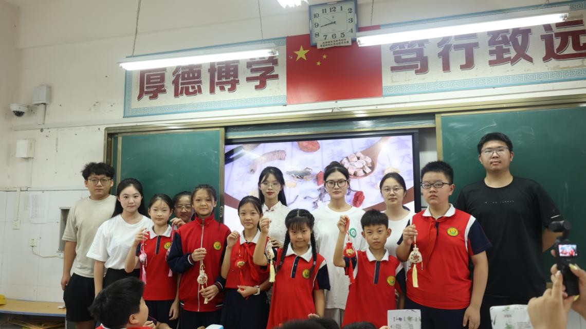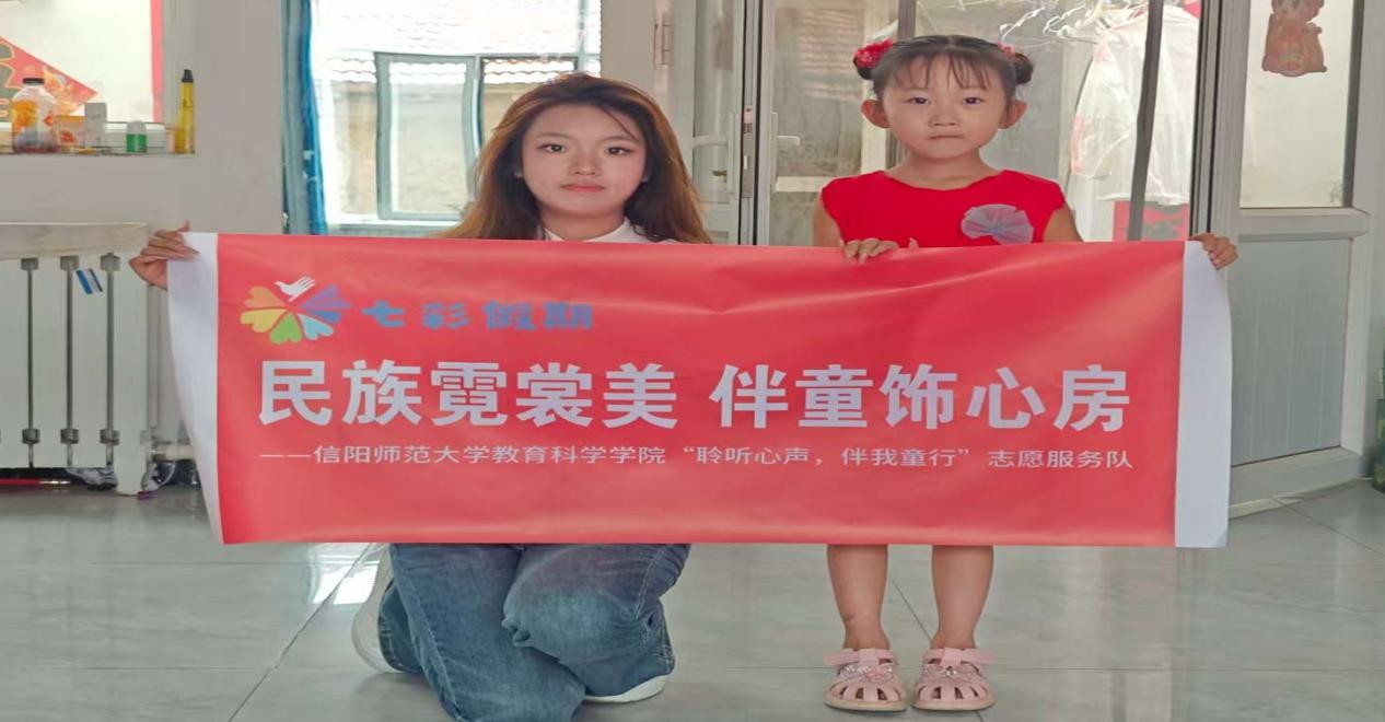 6月30日,志愿者把课堂搬进八小多功能室,带来艾草、藿香、丁香等道地药材,以“神农识百草”情景剧开场,穿插闻香识药、药材拼图、防疫香囊缝制等环节。孩子们分组称重、研磨、装袋、穿线,一只只药香四溢的“小仲景”香囊在指尖诞生。志愿者在调研问卷与回访中记录下20余条儿童微心愿,后续将通过“云端课堂+邮寄关爱包”持续陪伴。7月15日,教育科学学院“聆听心声,伴我童行”志愿服务队在内蒙古自治区赤峰市林西县开展“民族霓裳美·伴童饰心房”活动。志愿者以民族服饰为媒,通过PPT故事、实物展示,讲解蒙古族马蹄袖、回族彩纹、汉族盘扣等细节,再引导孩子以“我心中最美的民族服饰”为题现场绘画。孩子们在志愿者“一对一”倾听与鼓励下,用斑斓颜料把游牧星空、草原骏马、家乡炊烟化作图案,将心事悄悄藏进色块。两场活动均以文化体验代替说教,让儿童在颜料清香与草药芬芳中打开心扉、收获陪伴,也让志愿者把专业所学化作守护童心的温暖力量。