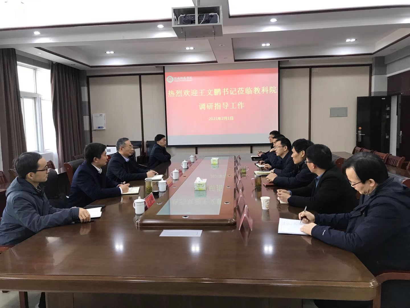 2月1日下午,校党委书记王文鹏到教育科学学院开展调研指导工作,深入了解教育科学学院的发展情况。校党委副书记王文臣、副校长余本海陪同调研,校党委办公室负责人、教科院领导班子全体成员参加调研座谈会。