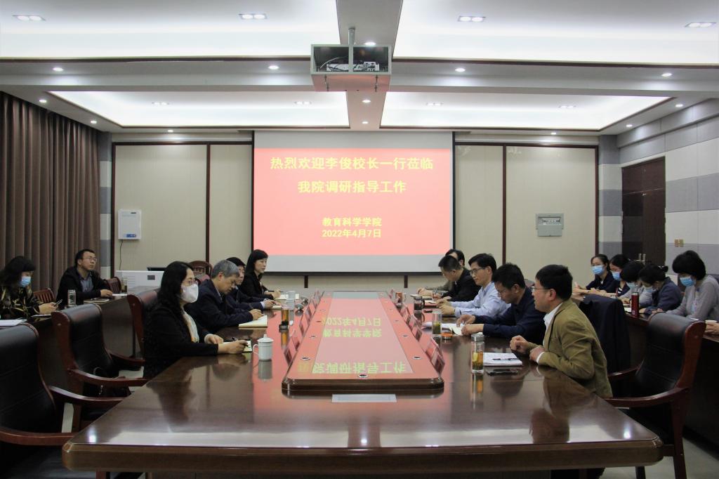 时间:2022-04-08 14:59:18 来源:教科院新闻部 作者:教科院新闻部 阅读: 次4月7日下午,校长李俊带领校长办公室、人事处、研究生处、学科办等部门负责同志到教育科学学院调研指导工作。教育科学学院班子成员、科级干部参加会议。会议由教育科学学院党委书记房加帅主持。