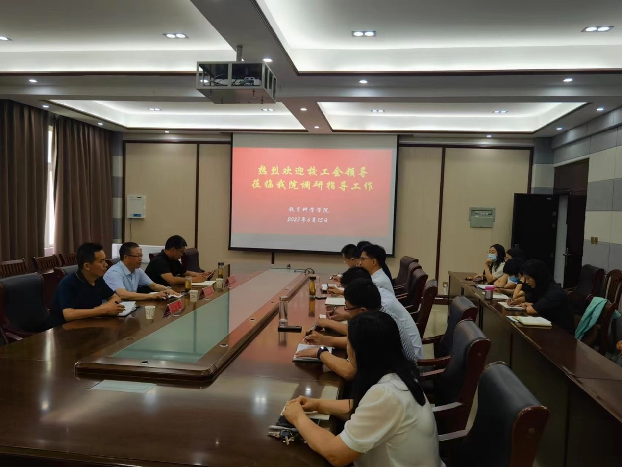 6月15日上午,信阳师范学院工会副主席张起军,工会办公室主任李孝民一行到访我院开展调研指导工作,教育科学学院党委书记房加帅,院长何安明,党委副书记董银银,副院长郭勇,工会会员和教师代表参加会议。会议于教科楼402会议室召开。