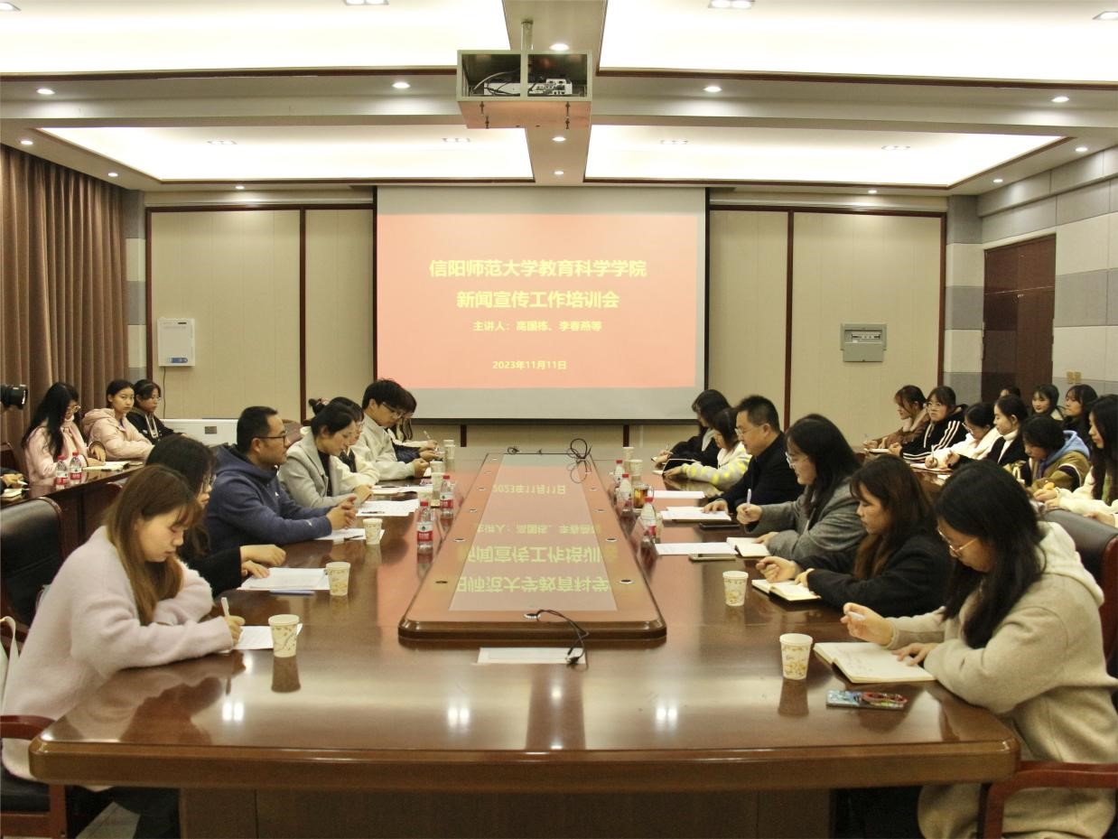 时间:2023-11-12 09:04:37 来源:教科院新闻宣传中心 作者:吴宇熙 吴皓 阅读: 次11月11日,教育科学学院于教科楼402会议室召开多多28新闻宣传工作培训交流会,会议邀请了校党委宣传部副部长高国栋,新媒体科科长李春燕,大学生记者团、电台学生骨干作辅导培训;教育科学学院党委副书记董银银,团委书记牛洁楠,专职辅导员杨艺卓,院学生会主席团、新闻宣传中心学生骨干参与本次会议,会议由董银银主持。
