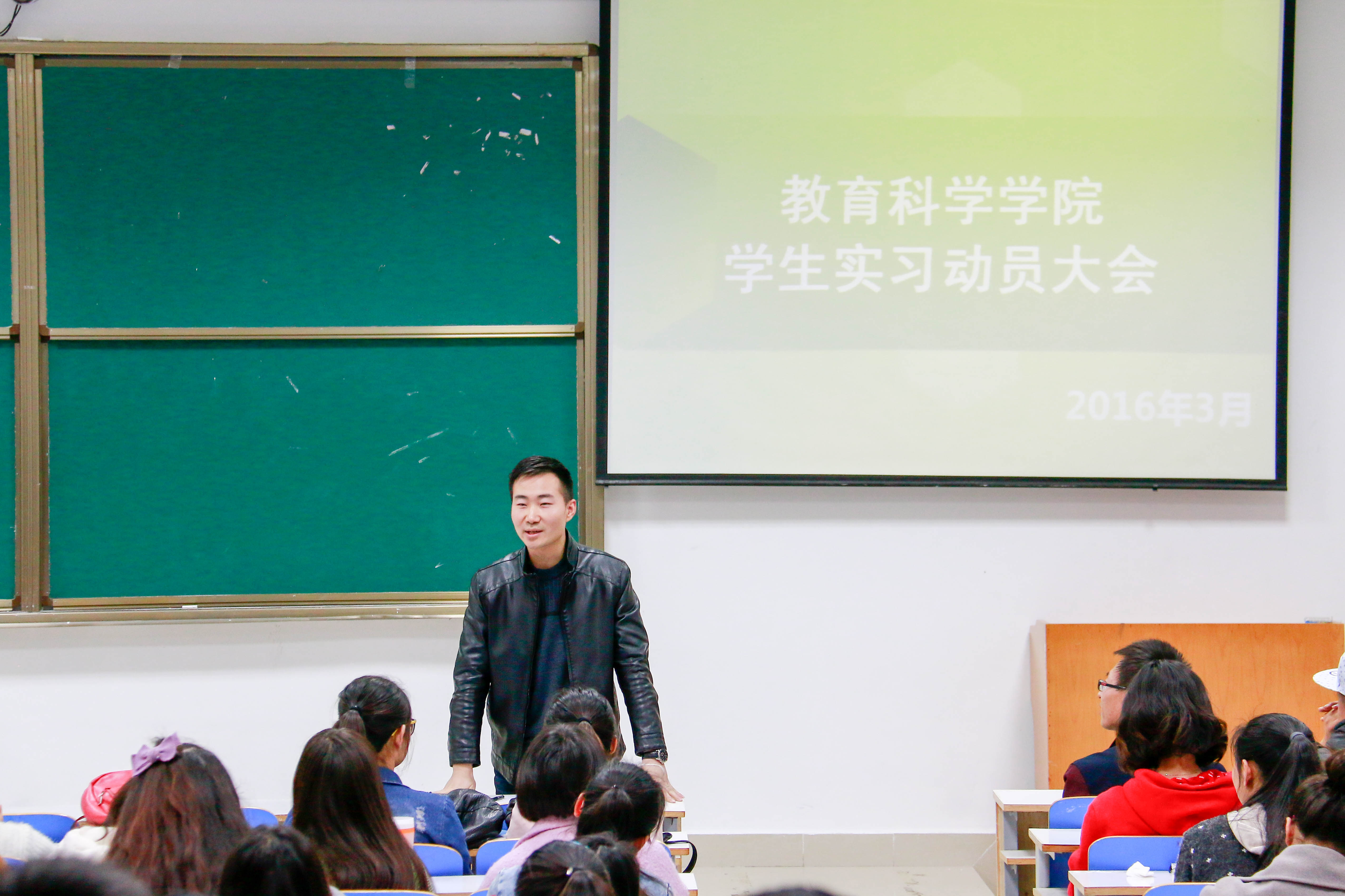 时间:2016-04-08 08:46:40 来源: 作者: 阅读: 次按照培养方案规定及教学实际需要,我院2013级教育学、心理学、应用心理学专业在修完核心专业课程后,需要在毕业前在指导教师的带领下完成实习。教育科学学院领导历来对学生的实习给予高度重视。3月29日下午5:00,领导朱桂琴副院长、冯铁臣副书记、刘丰铭团总支书记及各班班主任一行人来到社科102,为这三个专业共计162人召开实习动员大会,大会由汪媛媛老师主持。首先,朱院长为实习生讲解实习的必要性和重要性;接着,冯书记提醒学生们在实习过程中应注意的安全问题及个人应具有的安全意识。最后,刘书记和各班班主任对学生们提出了要求:尊敬师长、尊重领导、团结同事、服从安排、与他人和睦相处;希望在为期2个月的实习生活中有较大的收获。本次动员大会为实习工作的顺利开展打下了良好的思想基础。4月5日早上7:00,在教务处和教科院相关老师共同努力下,奔赴驻马店市、漯河市、平顶山市、南阳市和信阳市五个实习基地的列车迎着春日的朝阳从体育馆前顺利出发。教育科学学院
