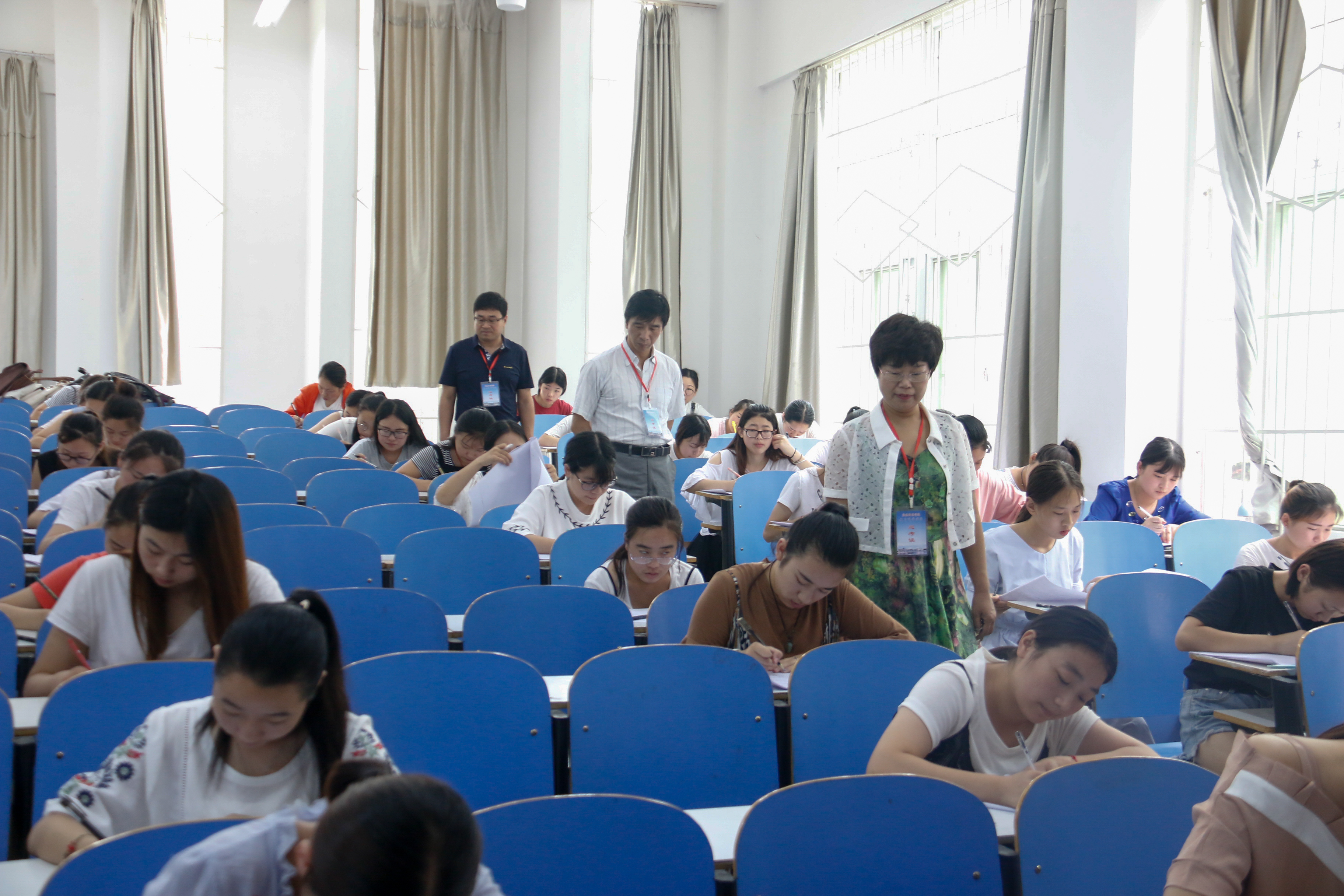 621日上午,教育科学学院党总支书记李辉、院长朱桂琴等领导深入考场,对考场安排、考场环境、学生考风进行巡视,并对监考老师的辛苦付出表示感谢。
