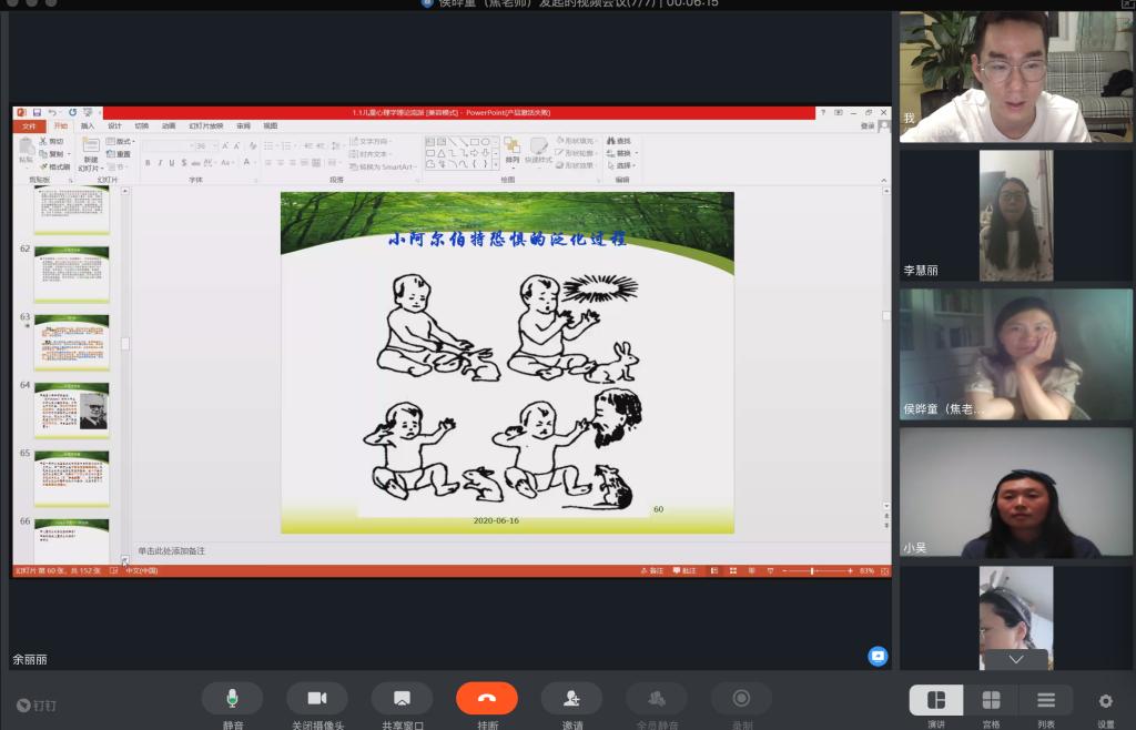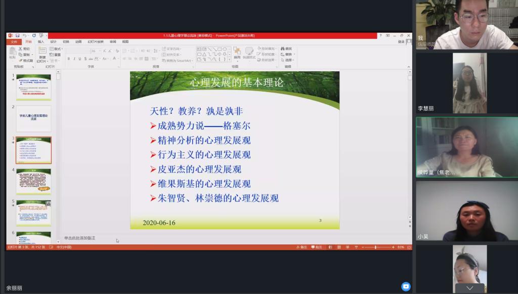 为全面贯彻落实新时代全国高等学校本科教育工作会议精神,进一步提升课堂教学质量, 2020年6月18日,教育科学学院学前教育教研室全体专任教师通过网上授课的形式开展了教师听评课活动。