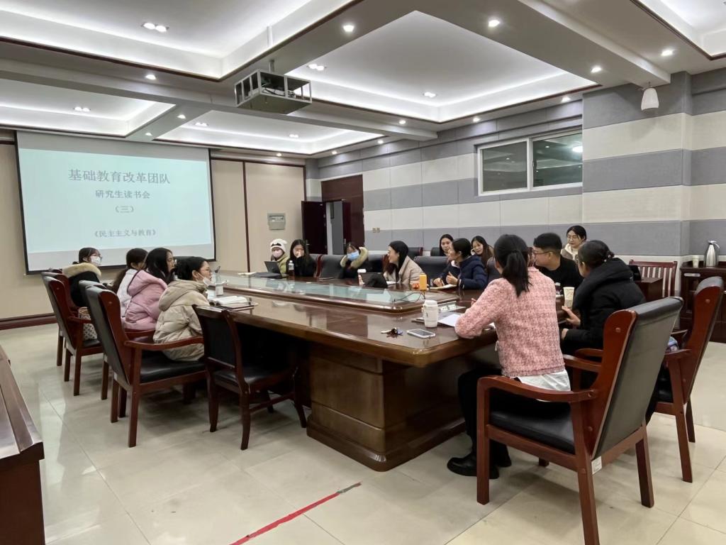 时间:2023-12-27 10:00:26 来源: 作者: 阅读: 次12月26日下午,我院“基础教育改革与发展团队”读书会活动如期在教科楼402教室举行。周娜、邢思珍、骆丽娟、李辉辉、李泽娟等老师及2023级教育学和学前教育学专业研究生参加。